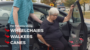 The Slide 'n Ride is intended to safely help transfer someone with a physical impairment from their wheelchair, cane, crutches, walker etc., into the vehicle by getting them seated outside of the car.